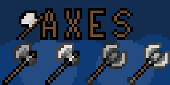 4 axes 2 normal ones and 2 battle axes (Stone and Iron)