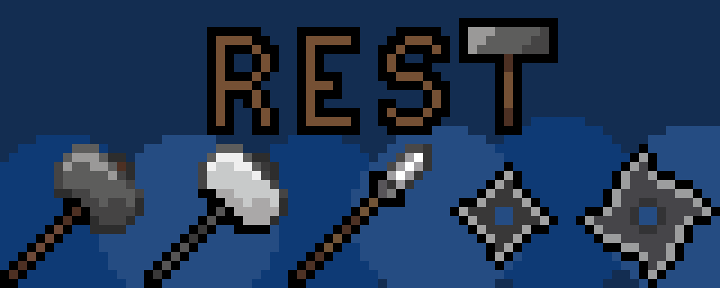 2 hammers(Stone and Iron) 1 Spear and 2 Shuriken's (Big and Small) the bigger one has an animation
